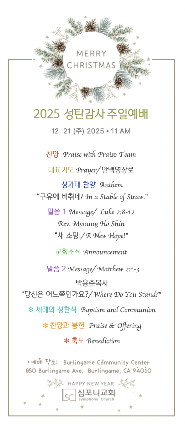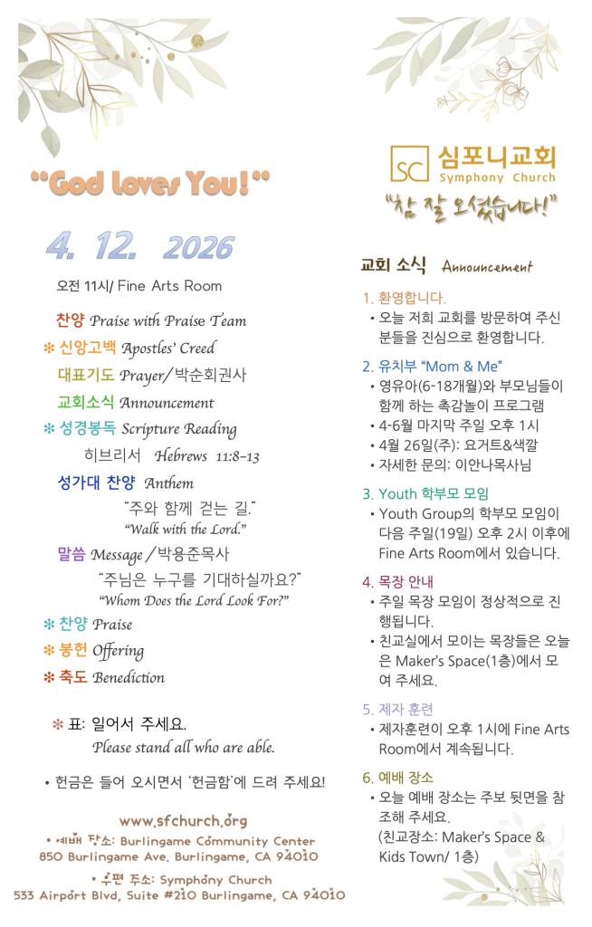 크게 보시려면 아래 주보를 터치 해 주세요.